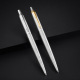 Le corps en acier inoxydable est gravé du motif ciselé bien connu de la marque. Le stylo est disponible en 2 finitions : avec clip doré ou clip chromé.