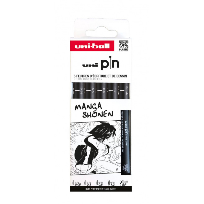 Pochettes de feutres Uni-ball PIN, feutres de dessin et d'écriture à pointe calibrée reconnus pour leur grande qualité et le noir profond de leur encre.