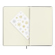 Couverture rigide aux coins arrondis avec dorures, fermeture par élastique. 240 pages lignées de papier ivoire 70 g/m² certifié FSC et sans acide. Ruban marque-page et pochette intérieure à soufflet à l'arrière du carnet.