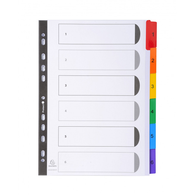 Exacompta kartonnen numerieke tabbladen. Wit karton 160 g FSC, gelamineerde veelkleurige tabs.