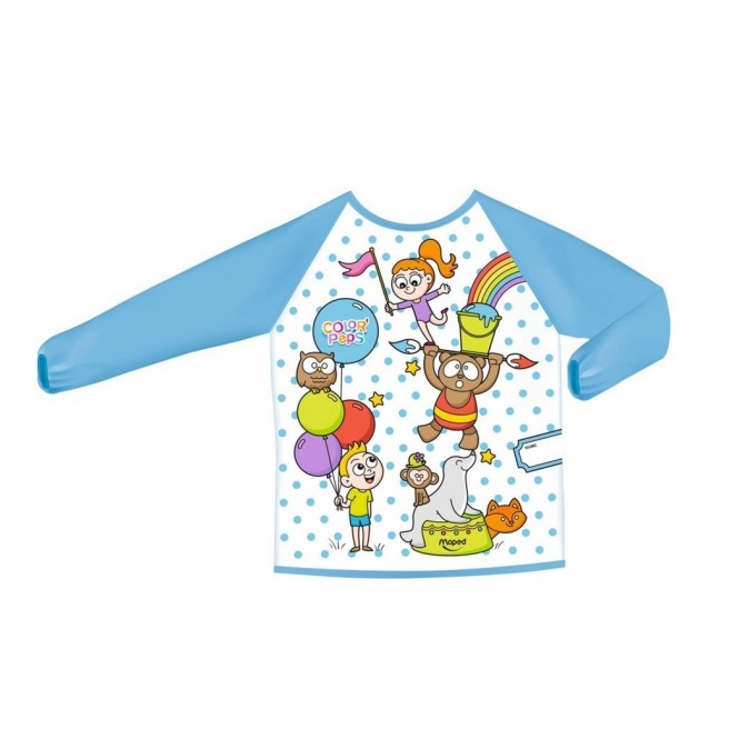 Maped Color'Peps verfschort voor kinderen van 18 maanden tot 5 jaar (van 82 tot 110 cm). Waterdicht en makkelijk te wassen, het is ideaal om kleding te beschermen tijdens de eerste schilderlessen van het kind. Gemakkelijk aan te trekken en te sluiten dankzij de klittenbandsluitingen aan de achterkant. Lange mouwen met elastiek aan de polsen.