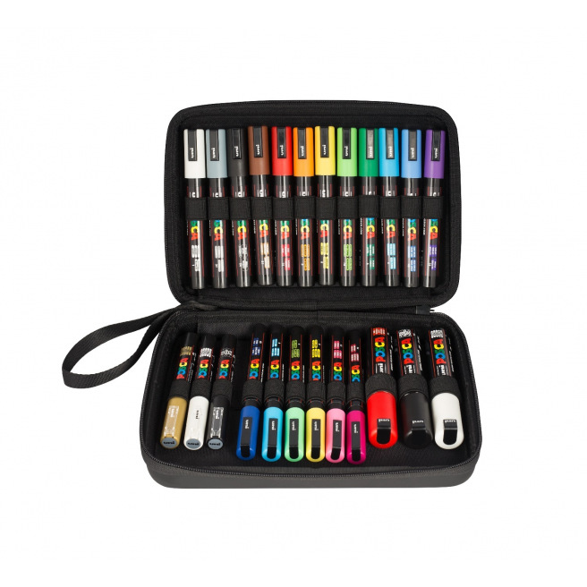 Uni-Ball Posca verfmarker set in verschillende selecties van punten en kleuren.