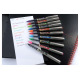 Vloeibare inkt met regelmatige stroom. Glijdt over het papier, zonder te krassen. Weerstaat water, oplosmiddelen en tijd.